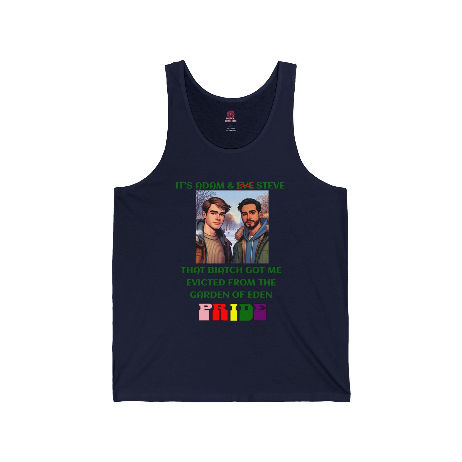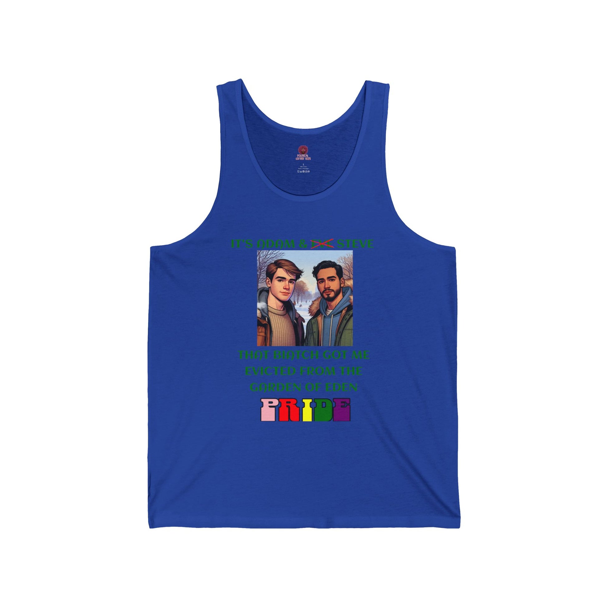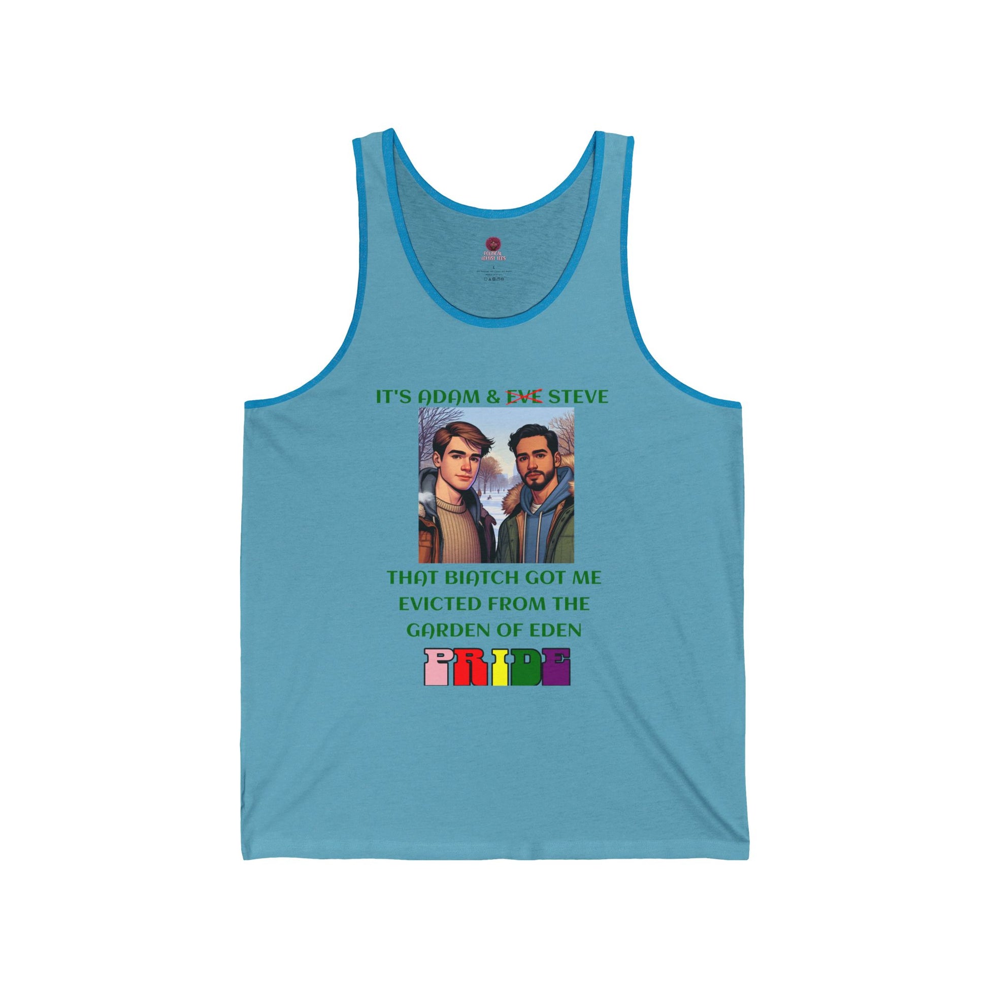 Funny Pride Tank Top: "That Biatch Got Me Evicted From the Garden of Eden" Unisex Jersey Tee