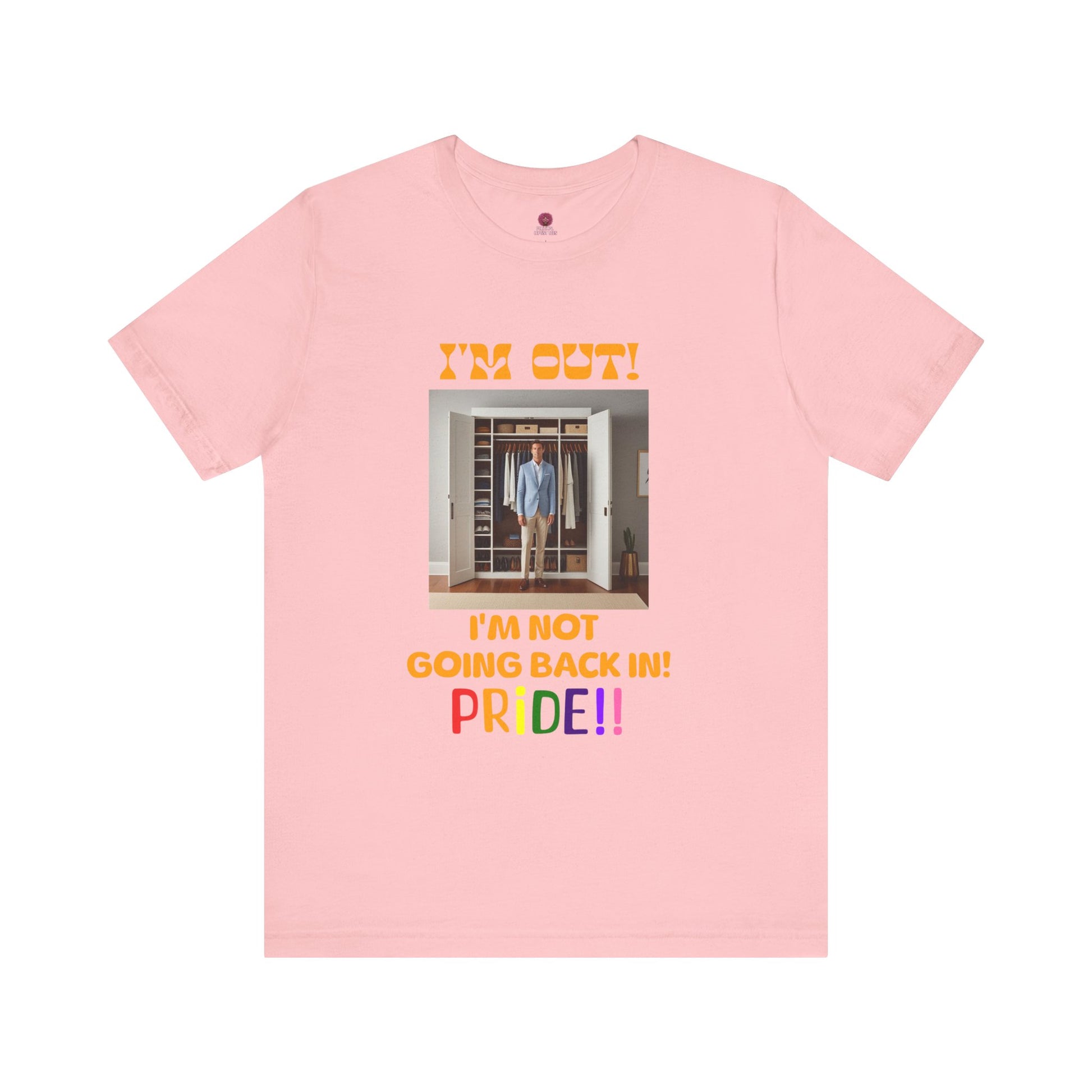 Celebrate your authentic self with this vibrant Unisex Jersey Short Sleeve Tee. With a bold design that shouts 'I'M OUT! I'M NOT GOING BACK IN! PRIDE!!', this tee radiates positivity and pride. Perfect for everyday wear or special occasions, it effortlessly combines comfort and style, making it an essential addition to your wardrobe. Ideal for LGBTQ+ pride events, casual outings, or as a thoughtful gift for friends and family who embrace their true selves. This lightweight, breathable shirt is an excellent choice for layering and fits seamlessly into both casual and semi-formal settings, allowing you to express your individuality wherever you go.