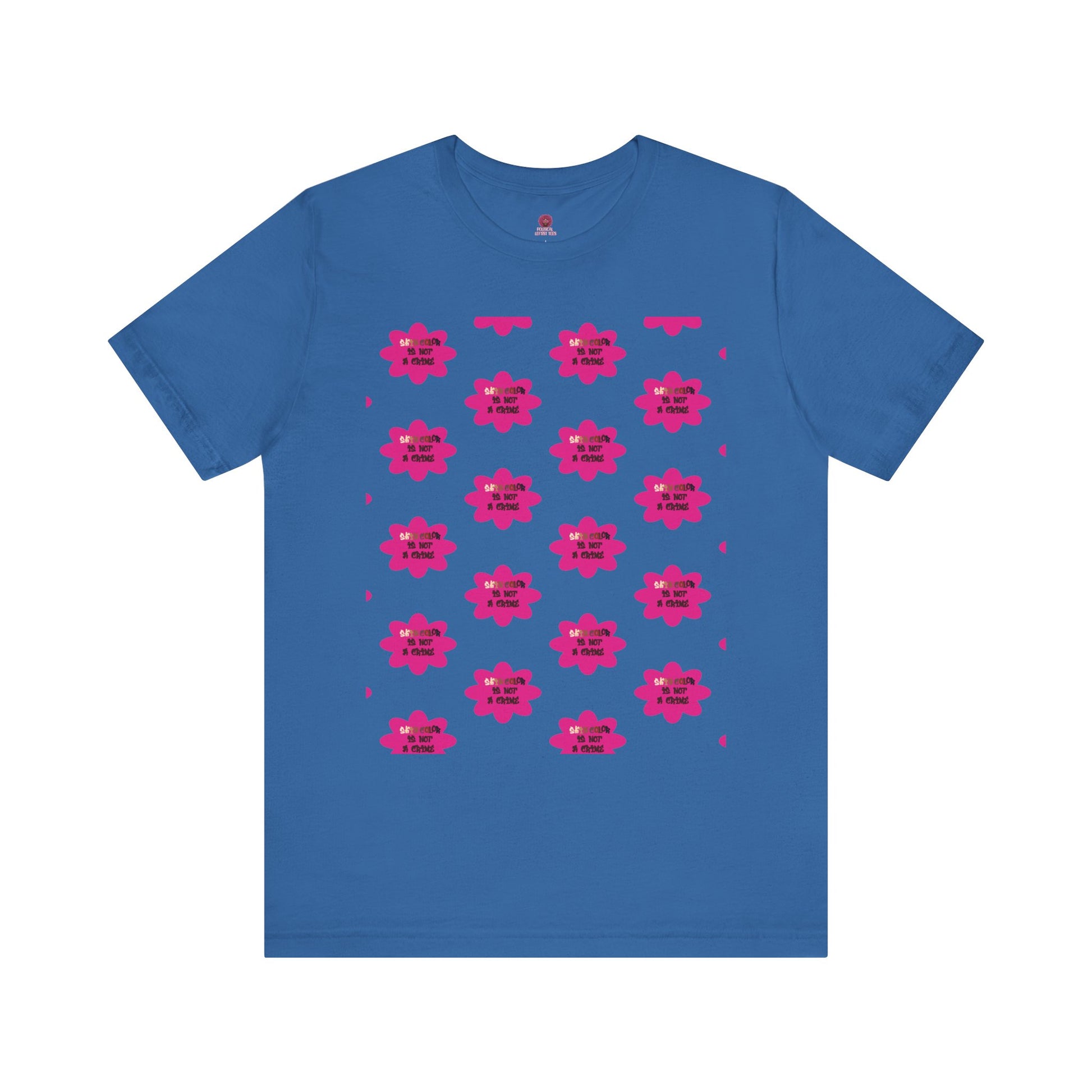 This Tee features a powerful message "Skin Color Is Not A Crime". It is perfect for those who want to make a statement about inclusivity and equality. Ideal for activists, advocates, and those who support social justice causes. This Tee is relevant for Black History Month, Juneteenth, and other celebrations of diversity and anti-racism.